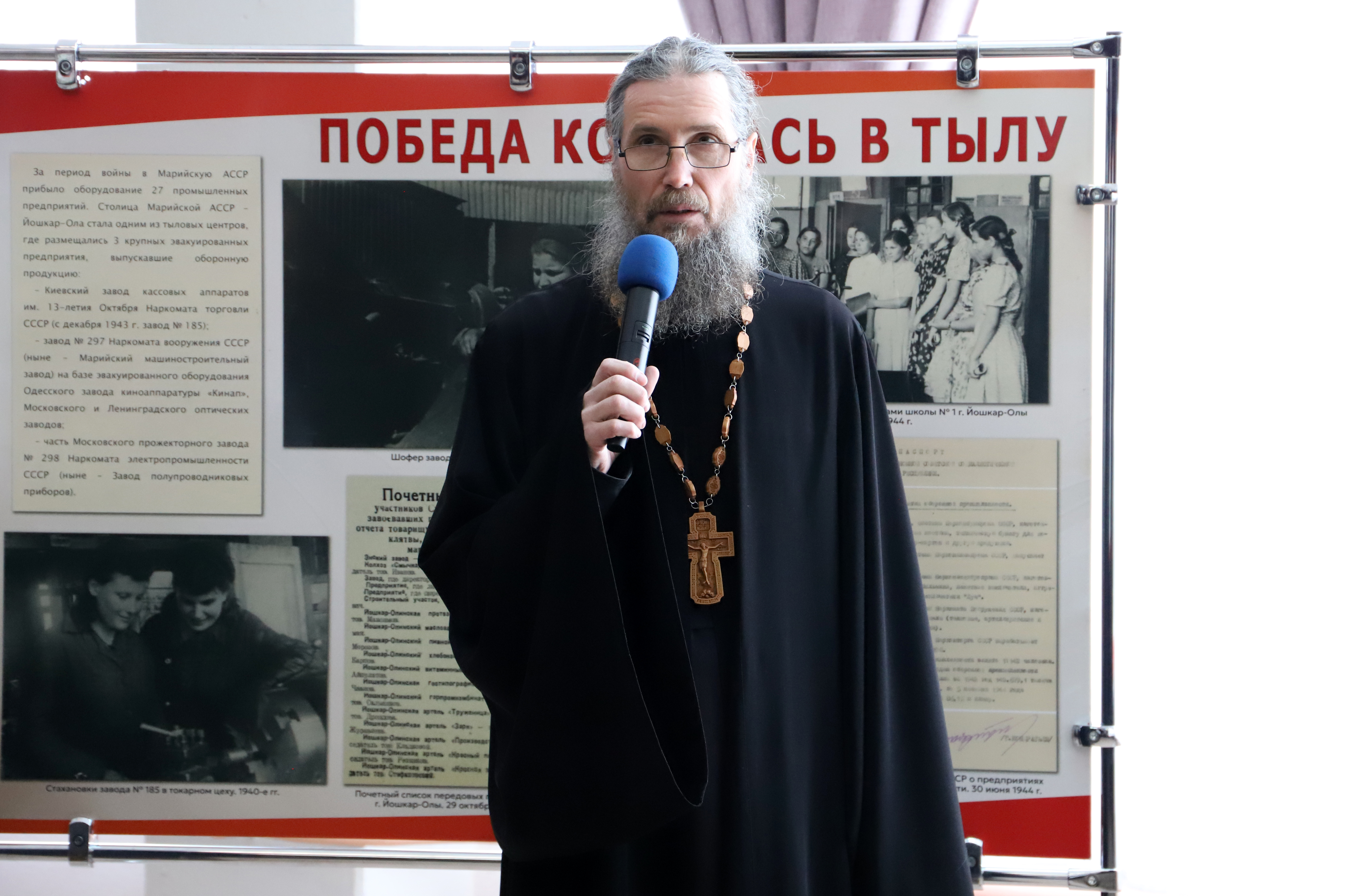 От авторов выставки с приветственным словом выступил заместитель директора Государственного архива Республики Марий Эл, ответственный секретарь Отделения Российского исторического общества в Республике Марий Эл А.В. Сердюков. Он отметил значимость работы Госархива и Отделения РИО в рамках патриотического воспитания подрастающего поколения.