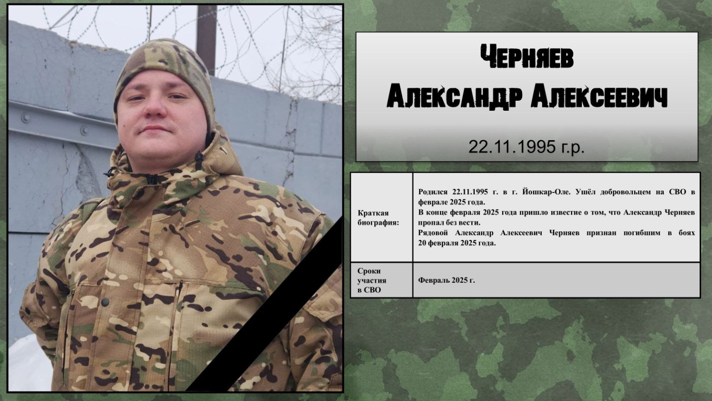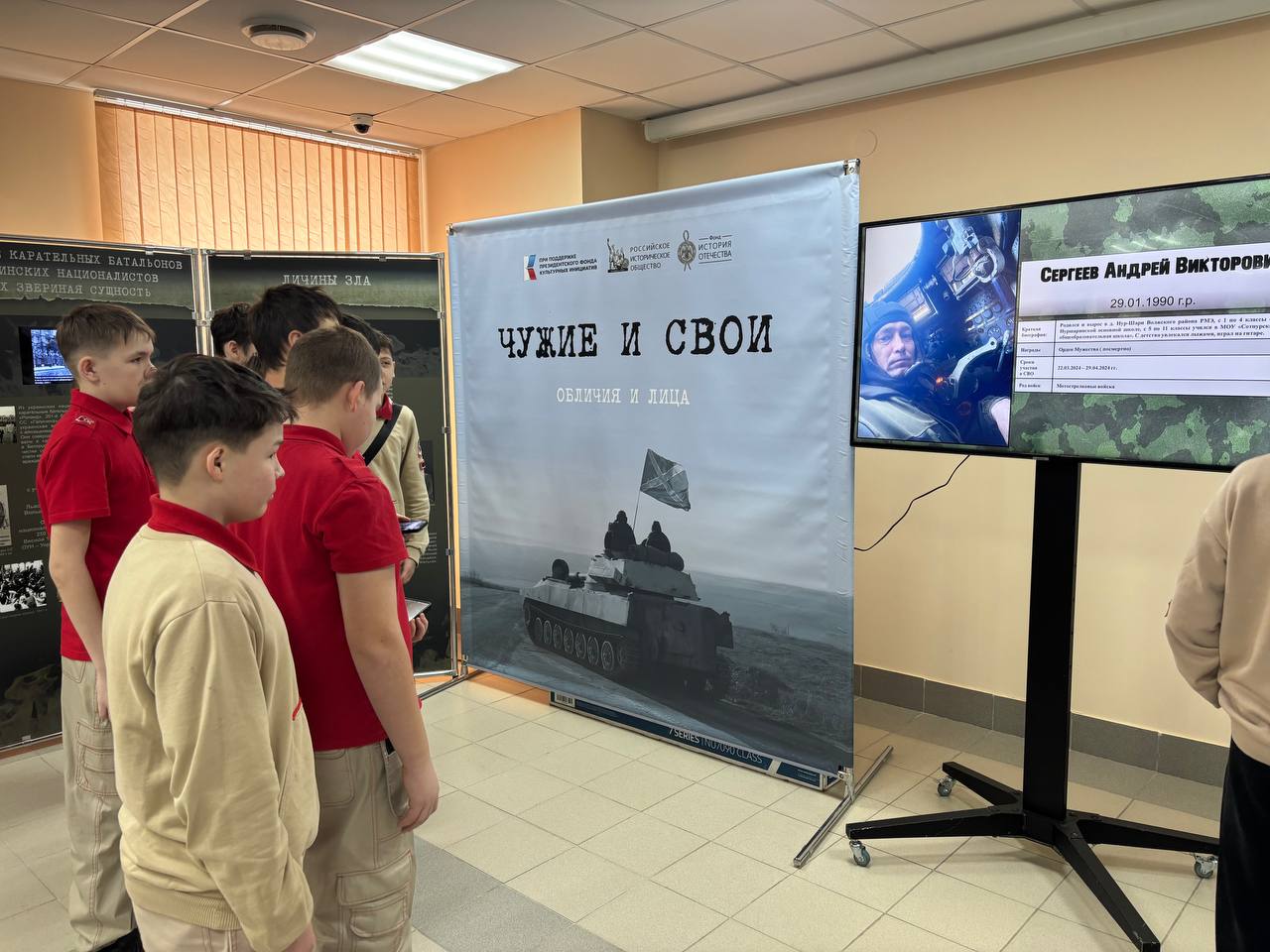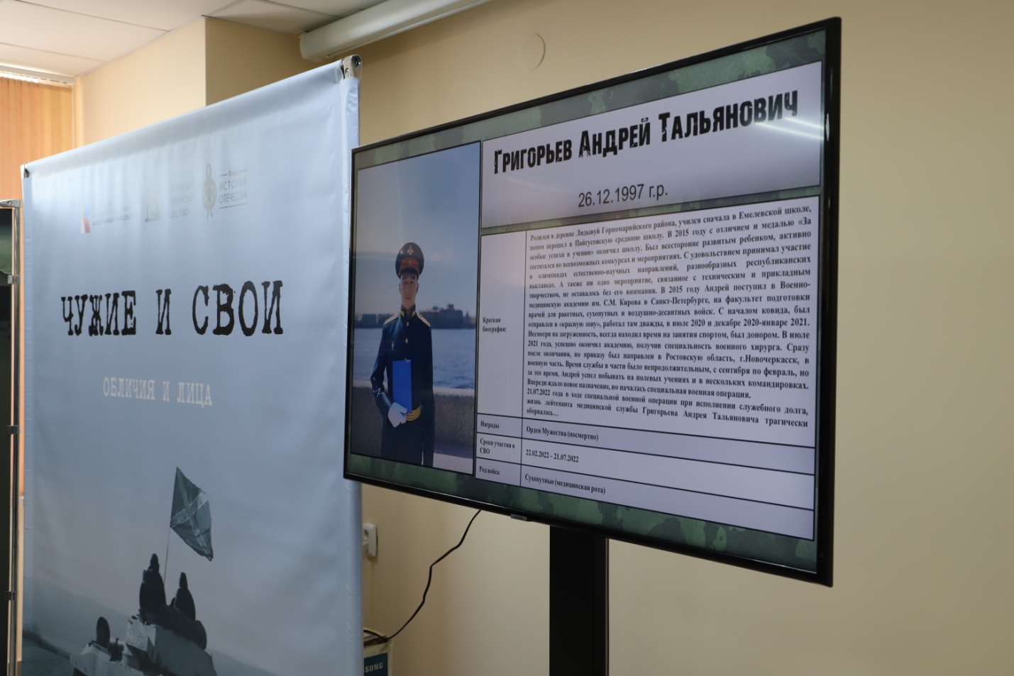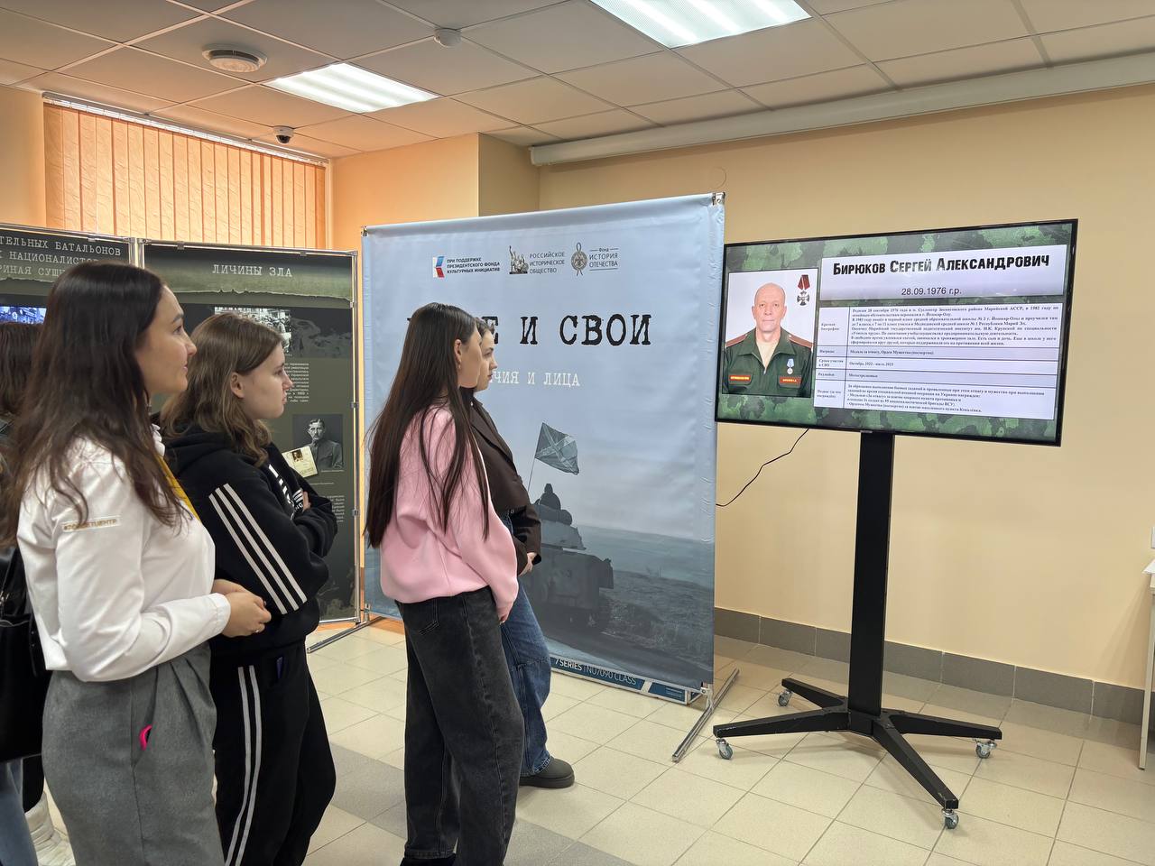 В Государственном архиве Республики Марий Эл на мультимедийном экране представлена информация об участниках Специальной военной операции – уроженцах Республики Марий Эл. Данные материалы гармонично дополняют выставочный проект «Чужие и СВОи. Обличия и лица», подготовленный Российским историческим обществом и фондом «История Отечества» при поддержке Президентского фонда культурных инициатив. В выставочной экспозиции, представленной на мультимедийном экране, размещены сведения о 221 человеке: портретные фотографии, краткие биографические справки, сведения о боевом пути и наградах. Материалы для размещения предоставлены филиалом Государственного фонда «Защитники Отечества» в Республике Марий Эл. Выставка экспонируется в конференц-зале Государственного архива Республики Марий Эл по адресу: ул. Эшкинина, 10В и продолжит работать по 5 марта 2026 года включительно.