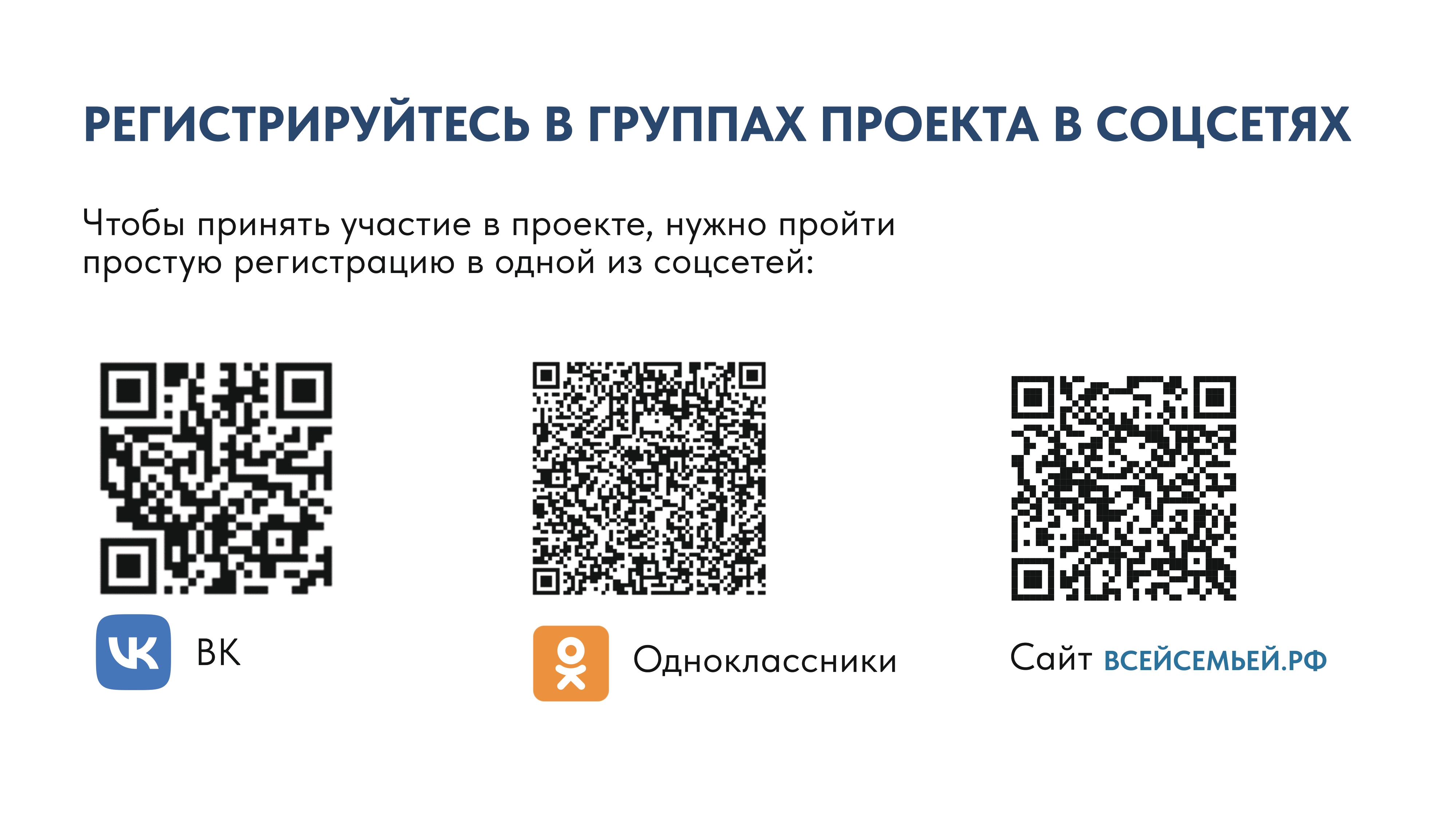 Выполняя задание, нужно обязательно сфотографироваться. Затем фото опубликовать на своей странице в Вконтакте или Одноклассниках. Обязательное условие – поставить хештэг проекта #всейсемьей